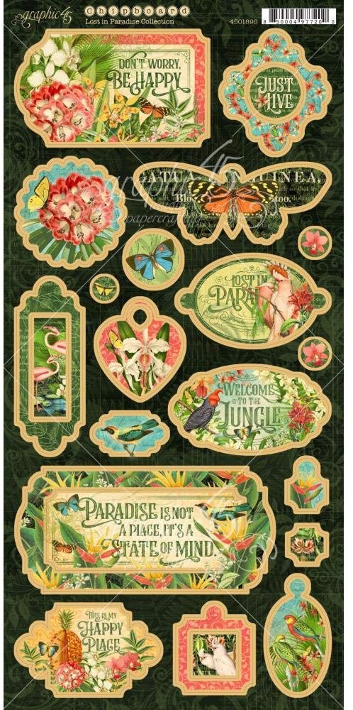 Graphic 45 Lost In Paradise Chipboard Die-Cuts 6"x12" Sheet (Decorative & Journaling)