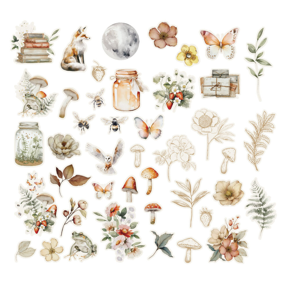 Woodland Tales Die Cut Shapes from the Woodland Tales Collection is a package of 86 elements, two each of the 36 designs. With plenty of florals and greenery, as well as other botanical elements like mushrooms, bees and berries, these foresty images are sure to delight. Create a dreamy project reminiscent of a forest stroll, or add an autumnal feel to cards and scrapbook pages with these charming die cut shapes.
