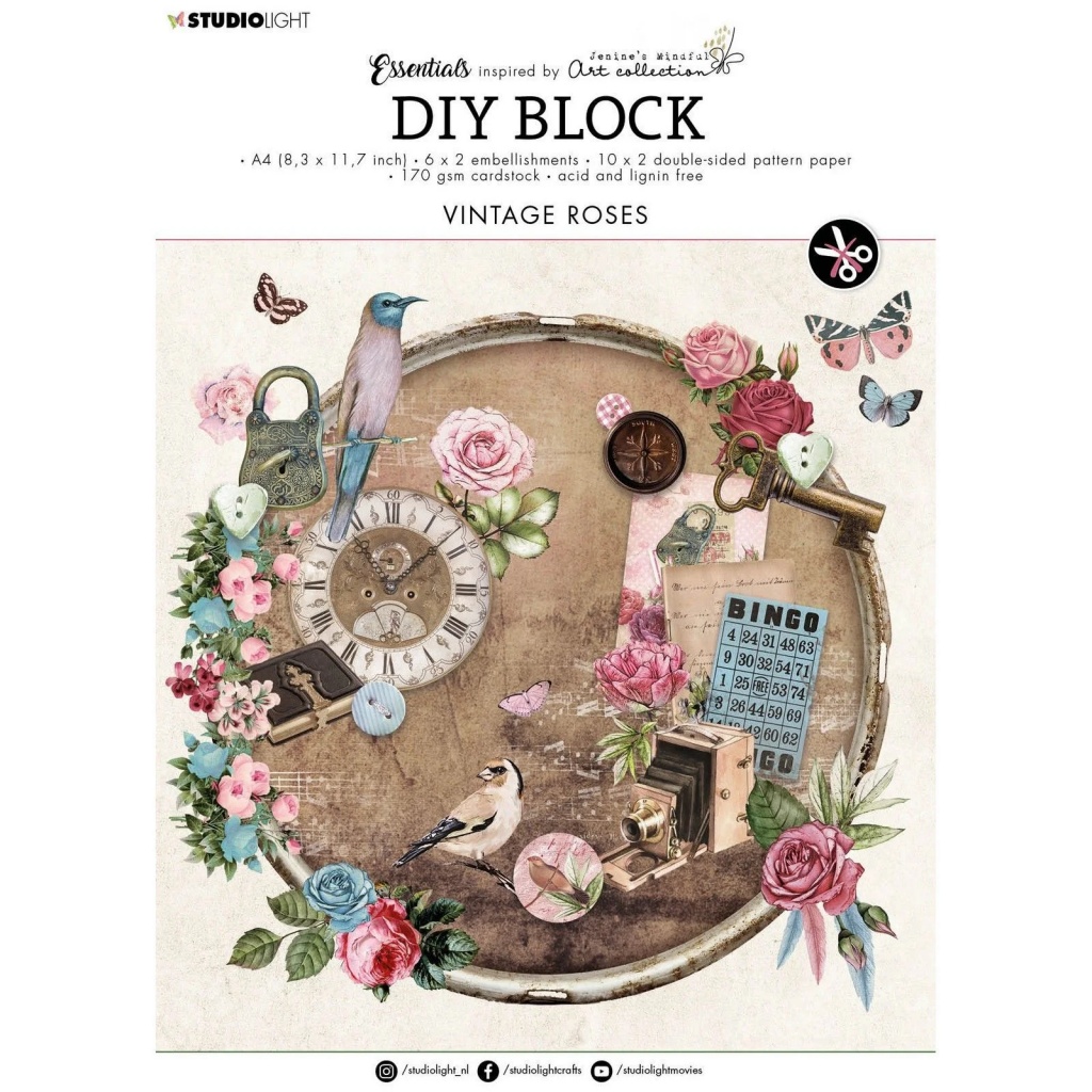 Studio Light Essentials A4 DIY Block - Vintage Roses (32 sheets)