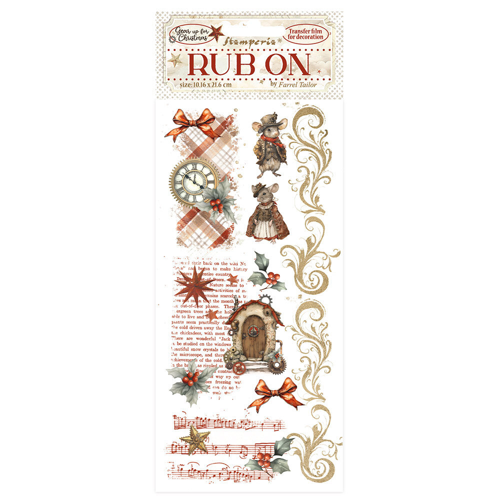 With Rub-ons you can transfer images to any kind of smooth surface, to look like they were printed on it! Ideal for Journaling and for decoration. Work best on light colour surfaces. Size: 10,16 x 21,6 cm.