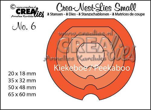 Crealies die set. Combine these Peekaboo dies with a Crea-Nest-Lies XXL die or a Crea-Nest-Lies XXL Labels & Tags die for endless possibilities! Die sizes: - 20 x 18 mm - 35 x 32 mm - 50 x 48 mm - 65 x 60 mm