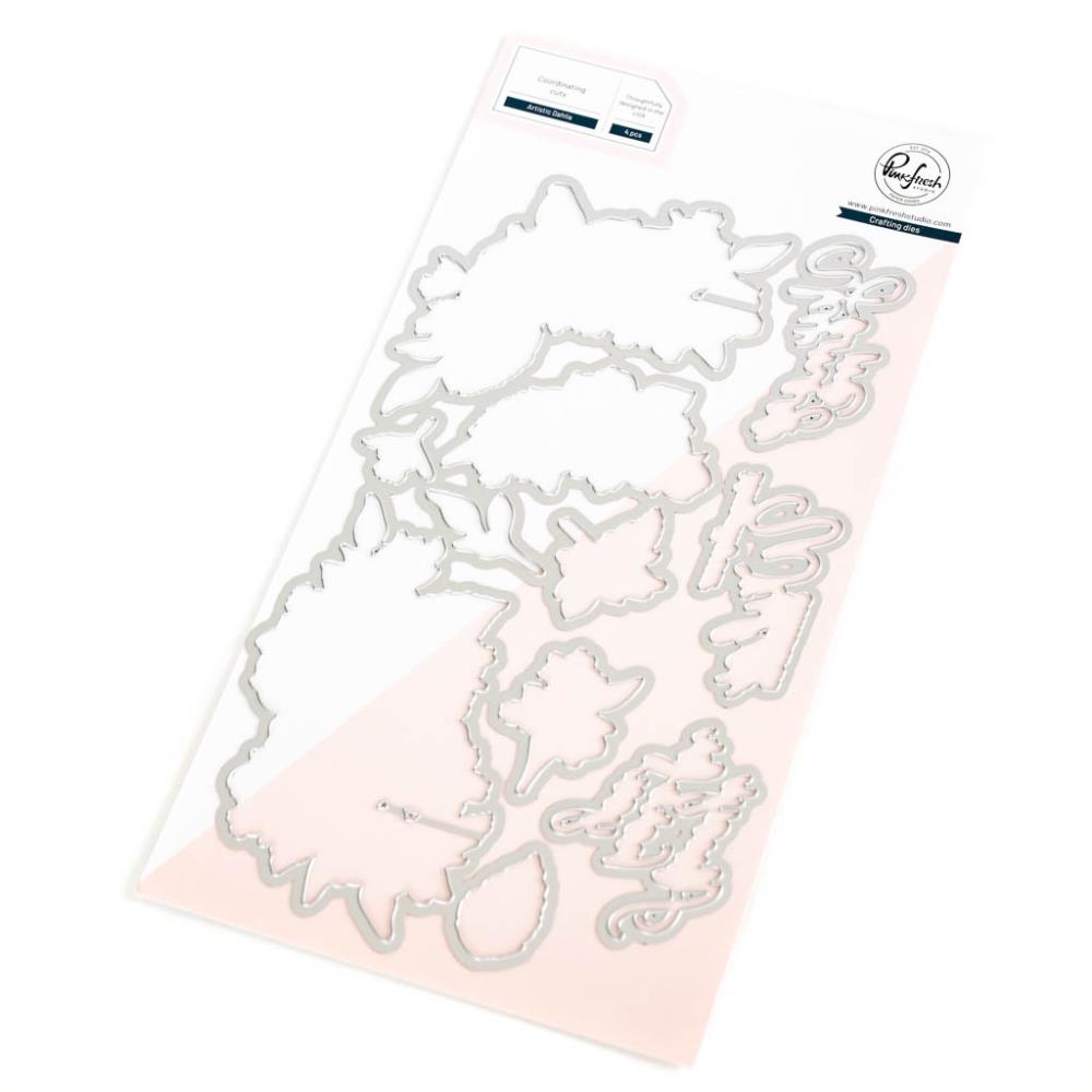 4 piece die to coordinate with the Artistic Dahlia stamp set, Artistic Dahlia layering stencils and Artistic Dahlia washi tape. Due to the nature of its size, you may need extended plates for your die-cutting machine, or will have to pass it through twice to die-cut entirely. The 1-piece die easily cuts the Artistic Dahlia floral clusters included in the washi tape, layering stencils or stamp set in one pass through your die-cut machine. With this innovative concept, you no longer must tape down multiple die pieces. Great for cutting the images out multiple times and bulk creating. Keep in mind that washi tape has a slick surface by nature, and you will want to tape the die down securely so it won't shift as it runs through your die-cut machine. There are four additional dies for cutting out the sentiments.