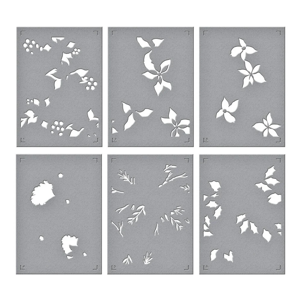 This set of 6 stencils coordinates with the Festive Poinsettias Press Plate is from the Amaryllis Christmas Collection by Yana Smakula. Use these stencils to add color and depth to your creations!
