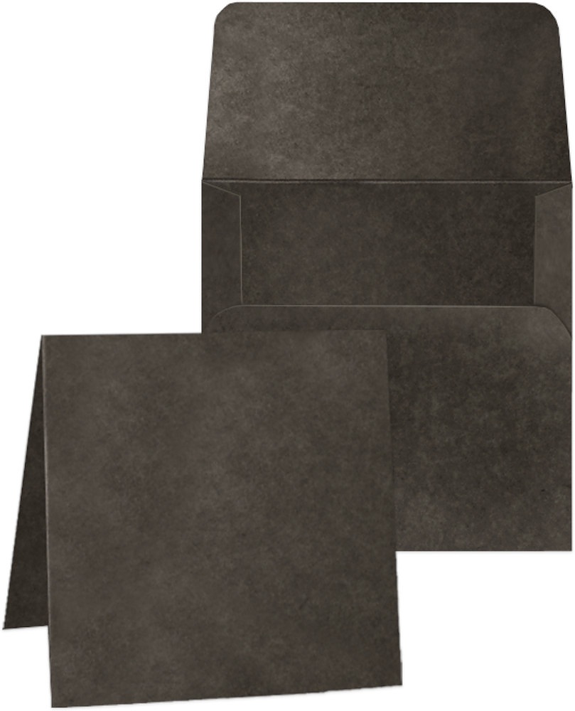 Square Cards 5.25" x 5.25" with Envelopes - Black. 100 lb cardstock. 6 card bases measuring 5.25" x 10.5" along with 6 envelopes. Get creative with our Square Cards and Envelopes! Perfectly sized at 4.25" x 5.25" and made with high-quality 100 lb cardstock, these Kraft card bases are ready for your next birthday, special occasion, wedding, or thinking of you handmade card. With 6 envelopes included, you can easily send out your thoughtful creations.