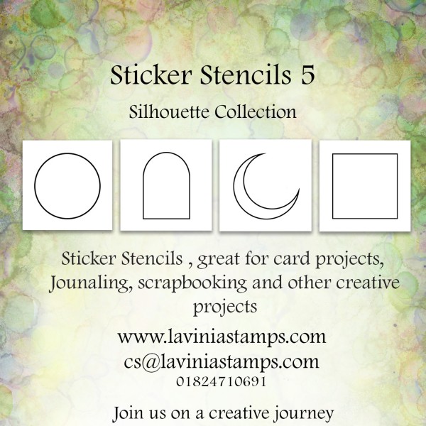These four Sticker Stencils can be used as a positive or negative.Repositionable, reusable and wipeable, the are great for card projects, journaling, scrapbooking and other creative projects. These stunning apertures are perfect for creating negative and positive images, you can work within the frame or around the shape. There’s a large sliver of a crescent moon, an arch, a square and a circle – all perfect for adding something a little special to your card design. Pack of four stencils. Size: 125mm x 125mm.