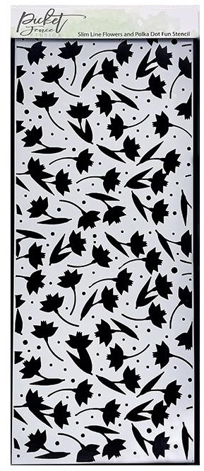 Picket Fence Studios 4"x10" Stencil - Slim Line Flowers And Polka Dot Fun