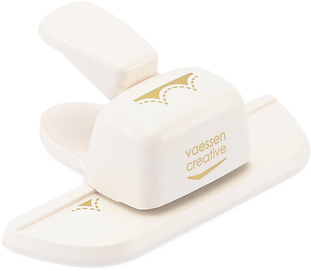 With this border punch, you can punch a stitched wavy border from paper, cardstock, photos, thin foam, and more in a single motion. The punch makes a large border of 0.3 x 1.8" (0.8 x 4.5 cm). The scalloped edges are approximately 0.8” (2 cm). Tip! Punch through aluminum foil every now and then to sharpen and maintain the punch.