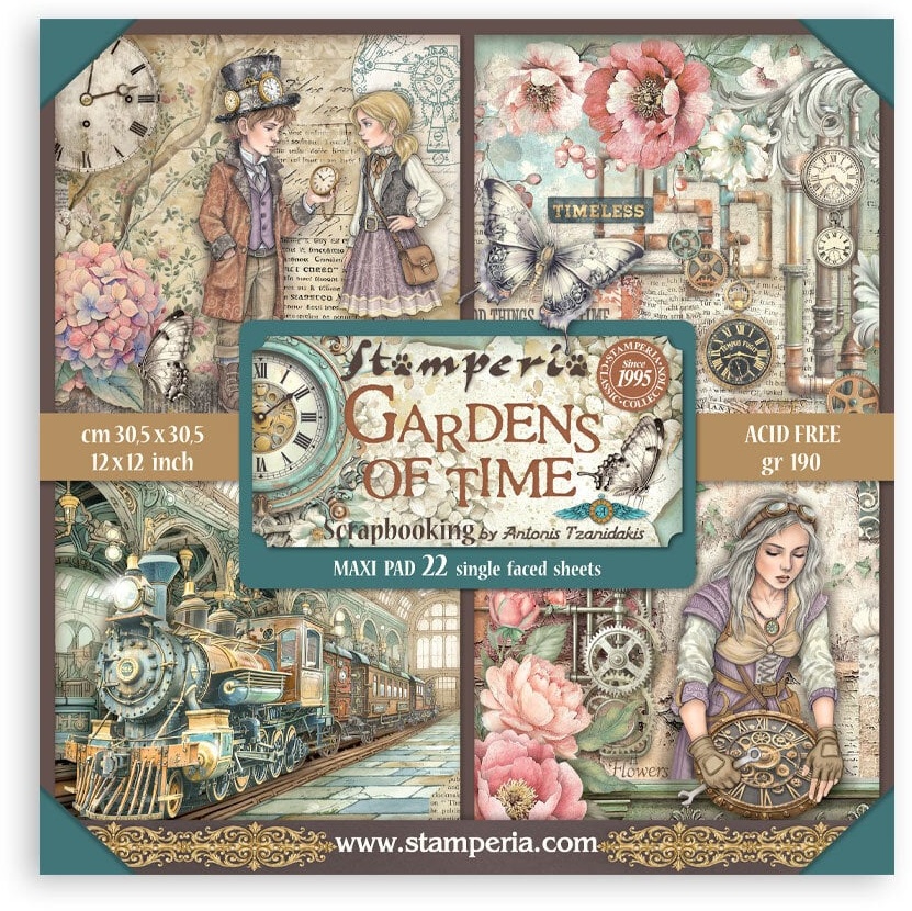 Stamperia 12”x12” Paper Pack Gardens of Time Maxi (22 sheets)
