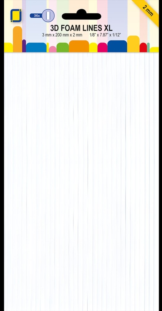 Foam tape and foam blocks are used for all kinds of applications, such as 3D cards, paintings and shake cards. 36x foam lines xL 3x200x2mm. 2mm thick foam.