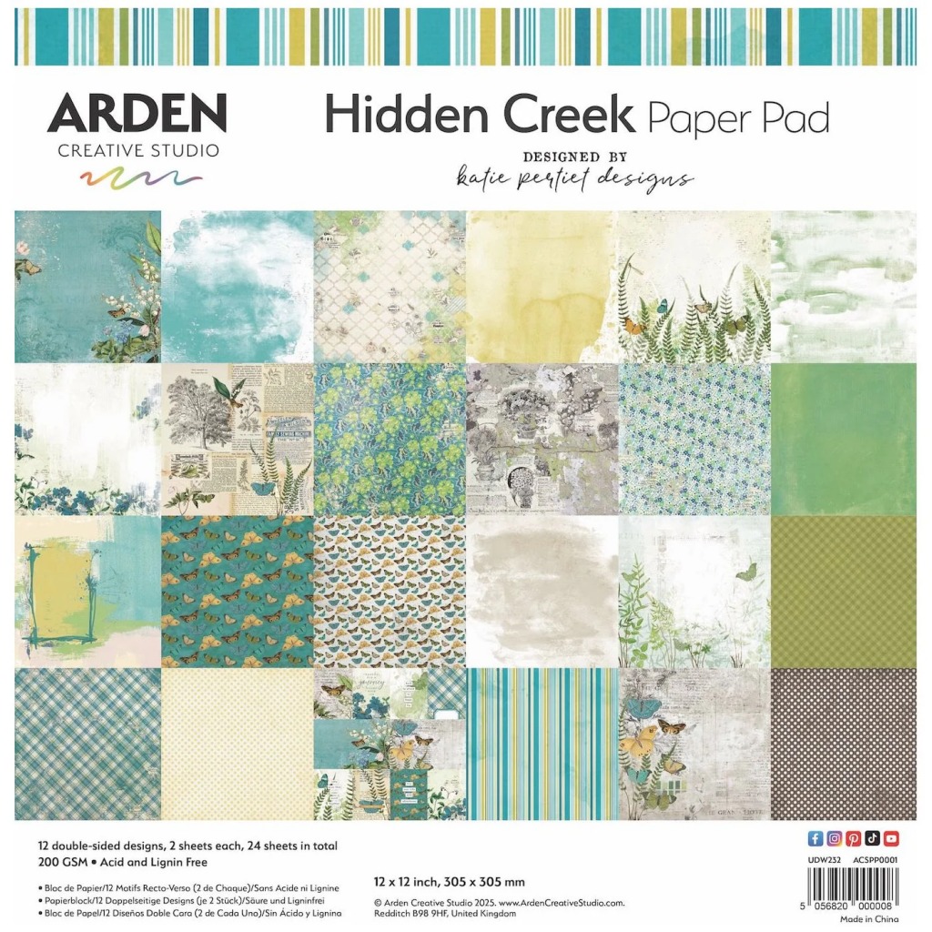 Transform your creative projects with the Hidden Creek Collection by Katie Pertiet. This stunning 12x12 inch paper pad features 24 unique designs (12 double-sided) that blend shabby chic aesthetics with vintage charm, making it perfect for any scrapbooker, cardmaker, or journaler. Crafted from premium 200gsm paper, each sheet is acid-free and lignin-free, ensuring the durability and longevity of your artistic creations. The collection is adorned with a delightful array of motifs, including intricate florals, enchanting butterflies, and charming patterns that evoke a sense of whimsy and nostalgia. With 2 sheets of each design, the Hidden Creek Collection offers limitless possibilities for your crafting endeavors. Let this beautiful paper pad inspire your imagination and add a touch of elegance and creativity to your scrapbook pages, cards, and journals.