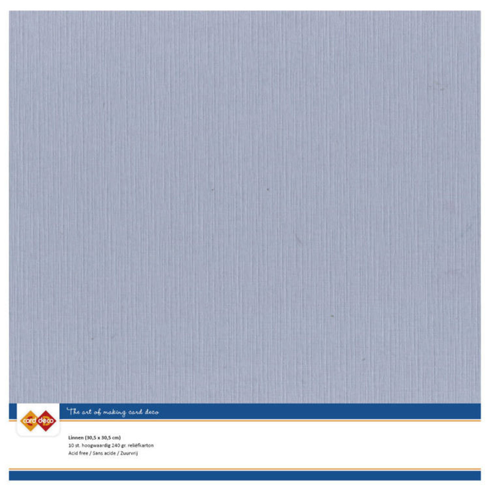 Card Deco Essentials. Linen Cardstock - 30,5 x 30,5 - Old Blue. Linen paper 240gsm. 10 sheets per pack. 30,5 x 30,5 cm. Acid-free.
