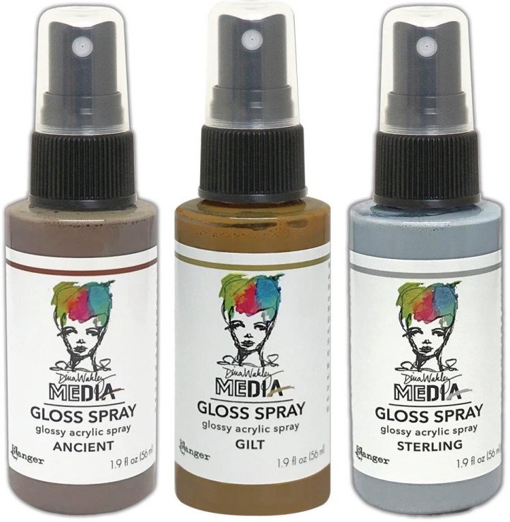 This pack contains 3 x 56 ml bottles of media gloss spray in the following colours: