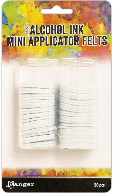 Stock up on the Alcohol Ink Mini Applicator Felts for use with the Tim Holtz Alcohol Ink Mini Applicator Tool! (tool sold separately. Product code: TAC62158). 50 replacement felts included.