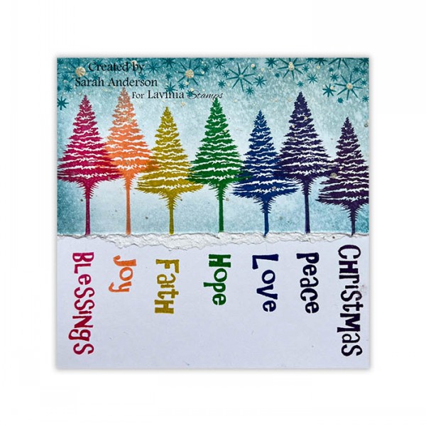 An individual silhouette stamp of a snow laden fir tree. Available in two sizes, this is the smaller. The long thin trunk leads up to branches covered with snow. Add this stamp to create a Festive Winter scene or with other trees like Small fairy Fir Tree and Skeleton Tree Scene to create a forest. Stamp size: 2.8cm x 6cm.
