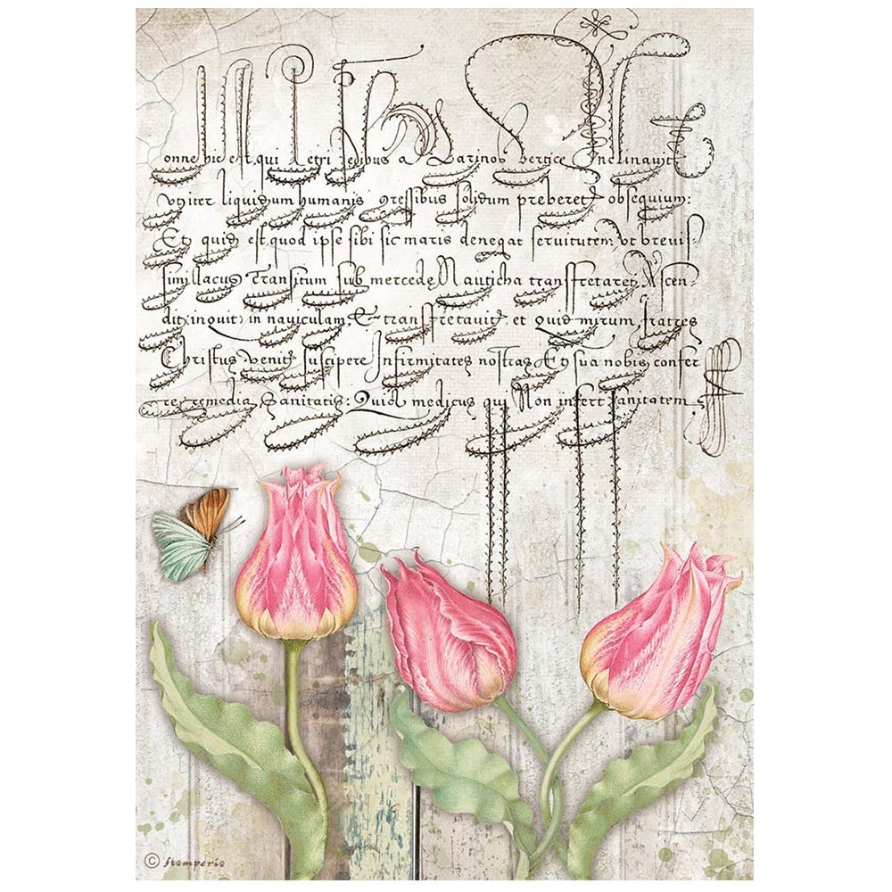 Stamperia A4 Rice Paper - Romantic Garden House Tulips