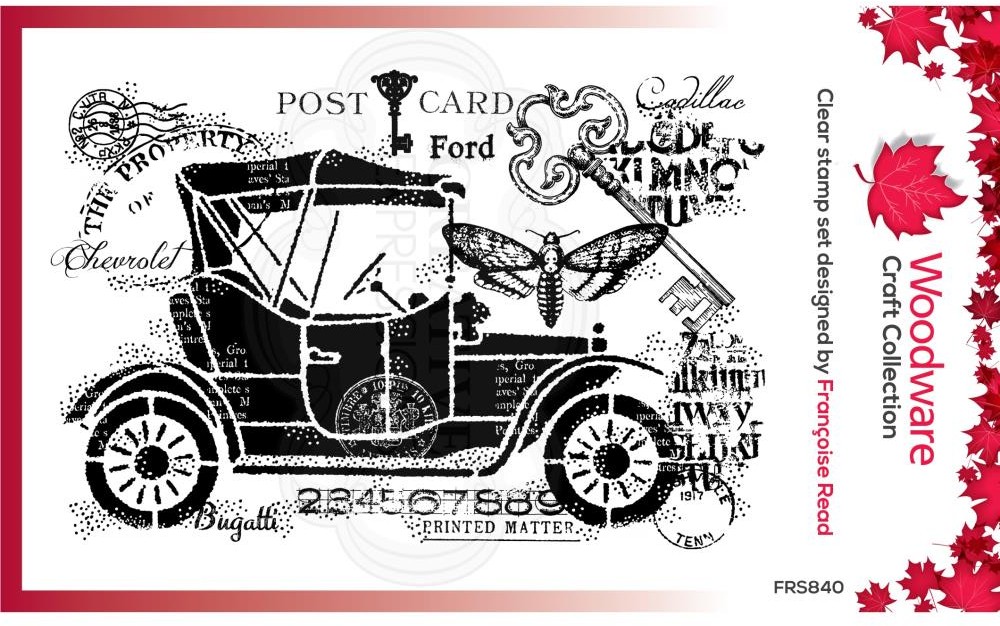 Clear stamps from Woodware on a 4"x6" backing sheet.