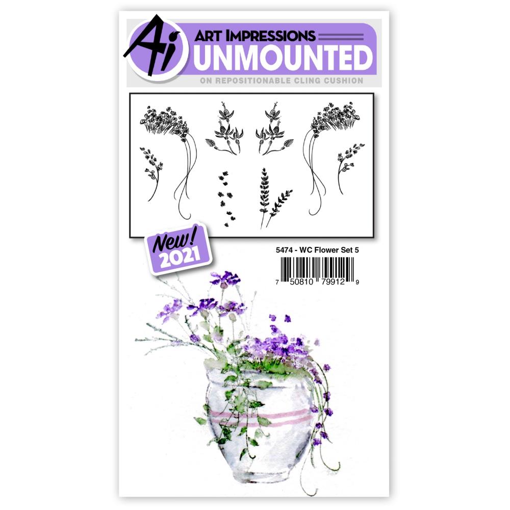 Art Impressions Watercolor Cling Rubber Stamps - Flower Set #5