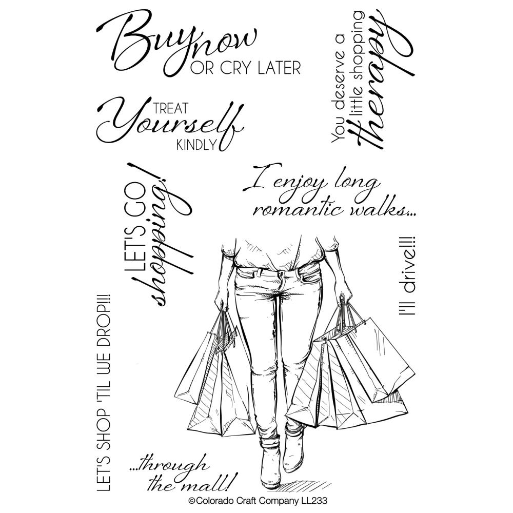 Designer clear stamps created with you in mind! These stamps are thoughtful, serious and often times funny! This package contains Shopping Therapy-Lovely Legs: a set of 11 clear stamps on one 4x6 inch backing sheet. Made in USA.