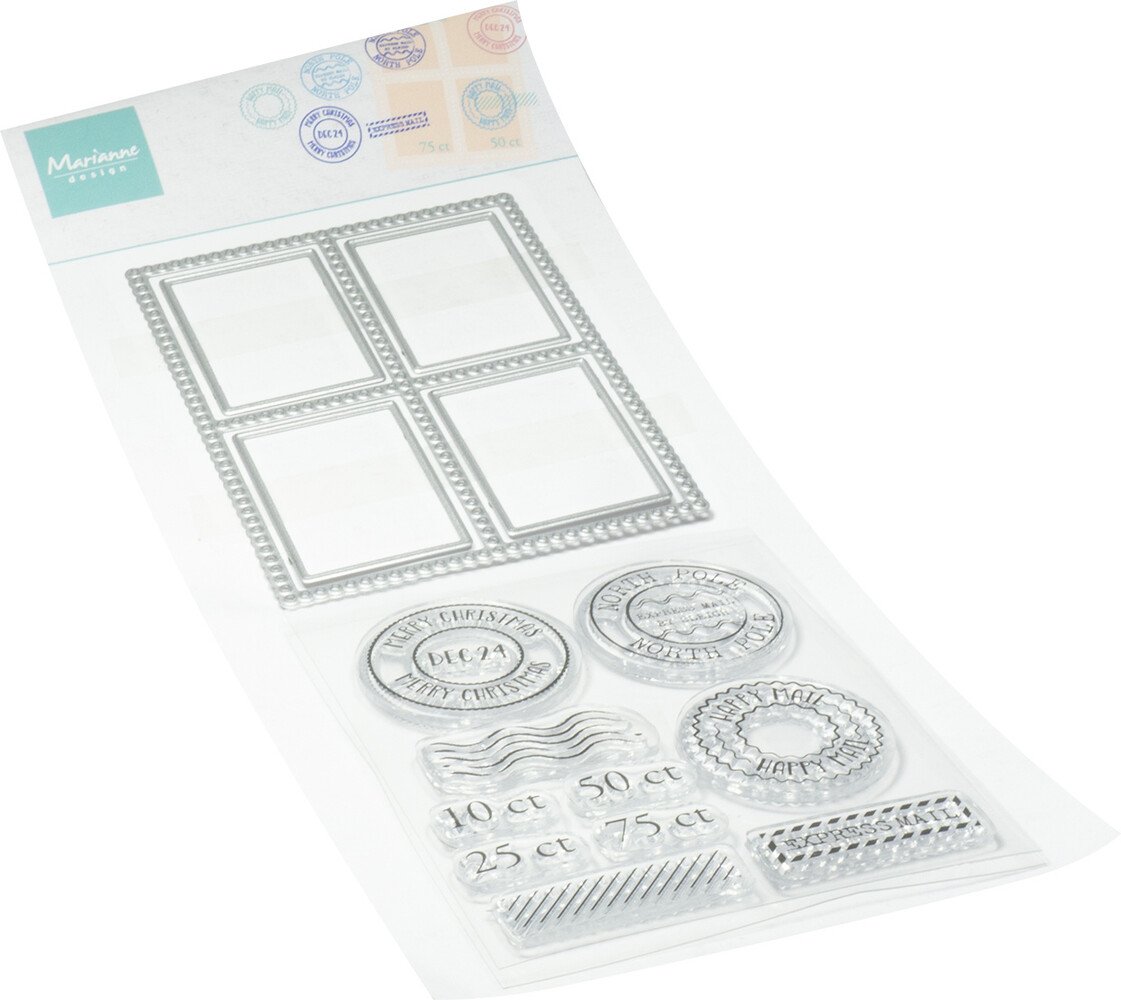 Clear Stamps. Postage stamp set. 5 pieces die 63 x 80 mm, 10 pieces stamps 61 x 68 mm. Create real sheets of postage stamps for your crafts.
