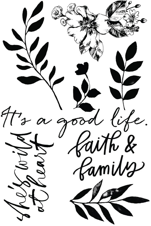 A pack of 8 clear stamps which measure 0.75" x 1.25" to 3.5" x 0.75"