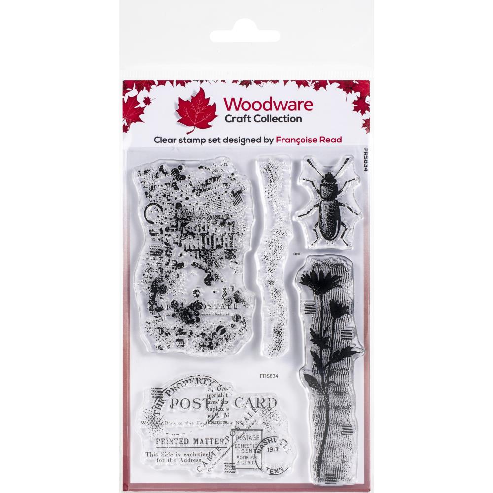 Clear stamps from Woodware on a 4"x6" backing sheet.