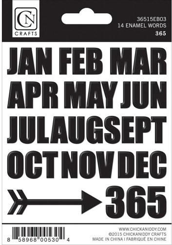 The 365 Collection Enamel Stickers by Chickaniddy Crafts are so much fun! You will have so many ideas pop into your head of what to use them on. Includes 14 enamel words.